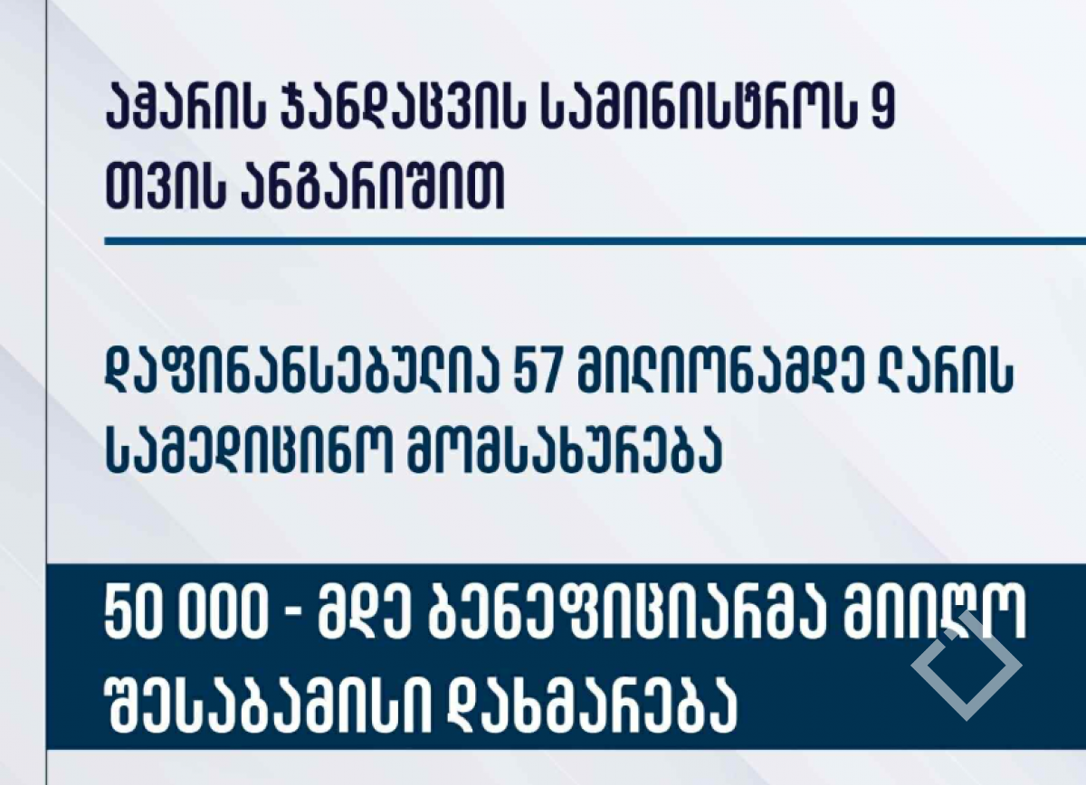 როგორც აჭარის მთავრობის თავმჯდომარემ აღნიშნა, მიმდინარე პერიოდში დაფინანსდა 57 მილიონამდე ლარის სამედიცინო მომსახურება, რომლის ფარგლებშიც 50 000-მდე ბენეფიციარმა მიიღო შესაბამისი დახმარება. მისი განცხადებით, წლის ბოლომდე ეს რიცხვი კიდევ უფრო გაიზრდება.